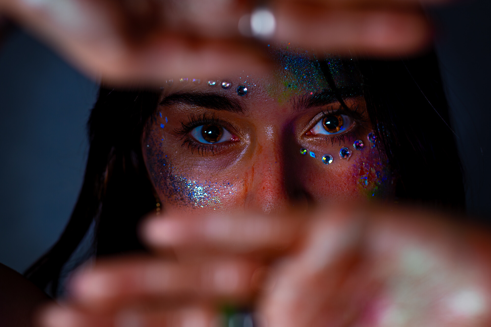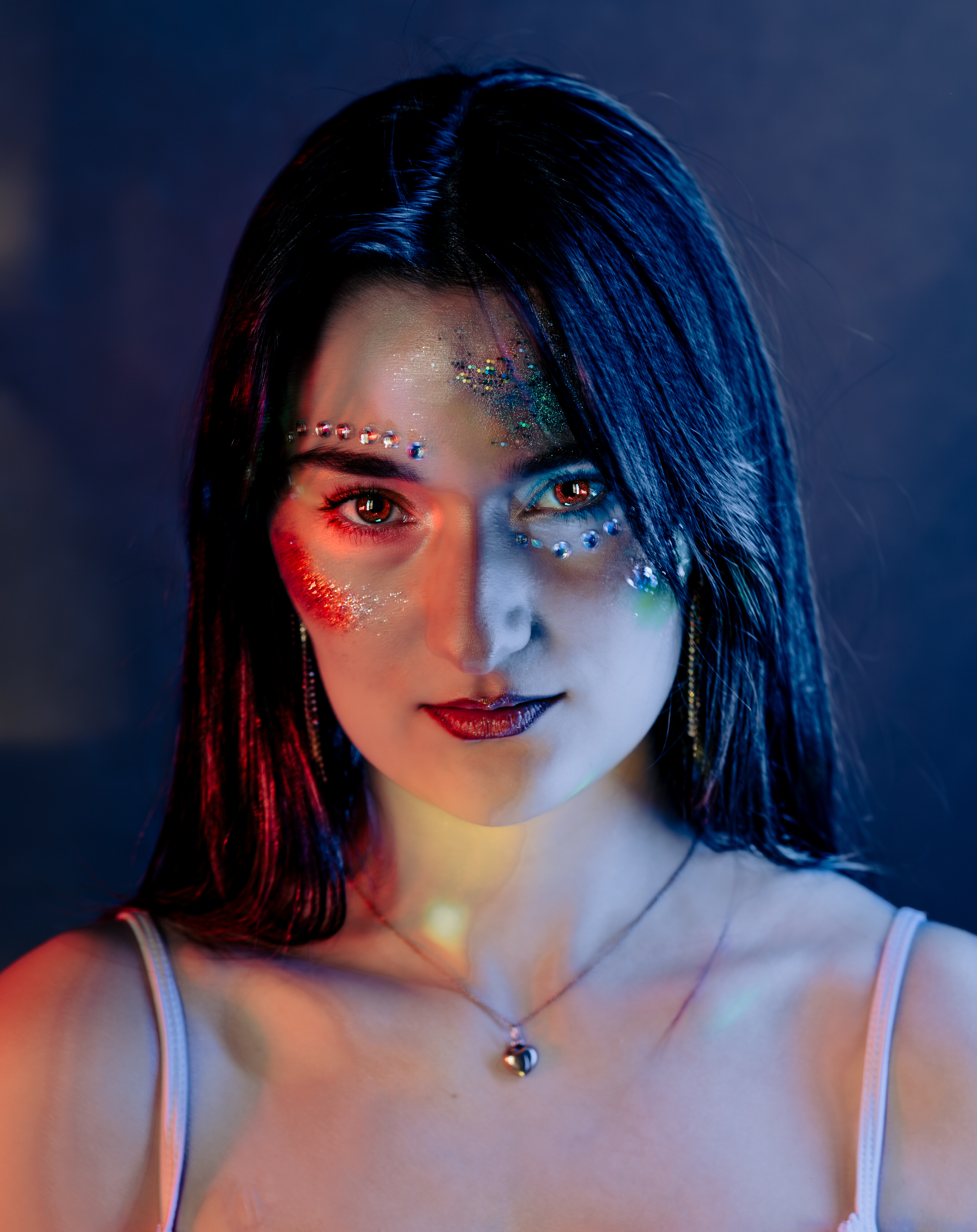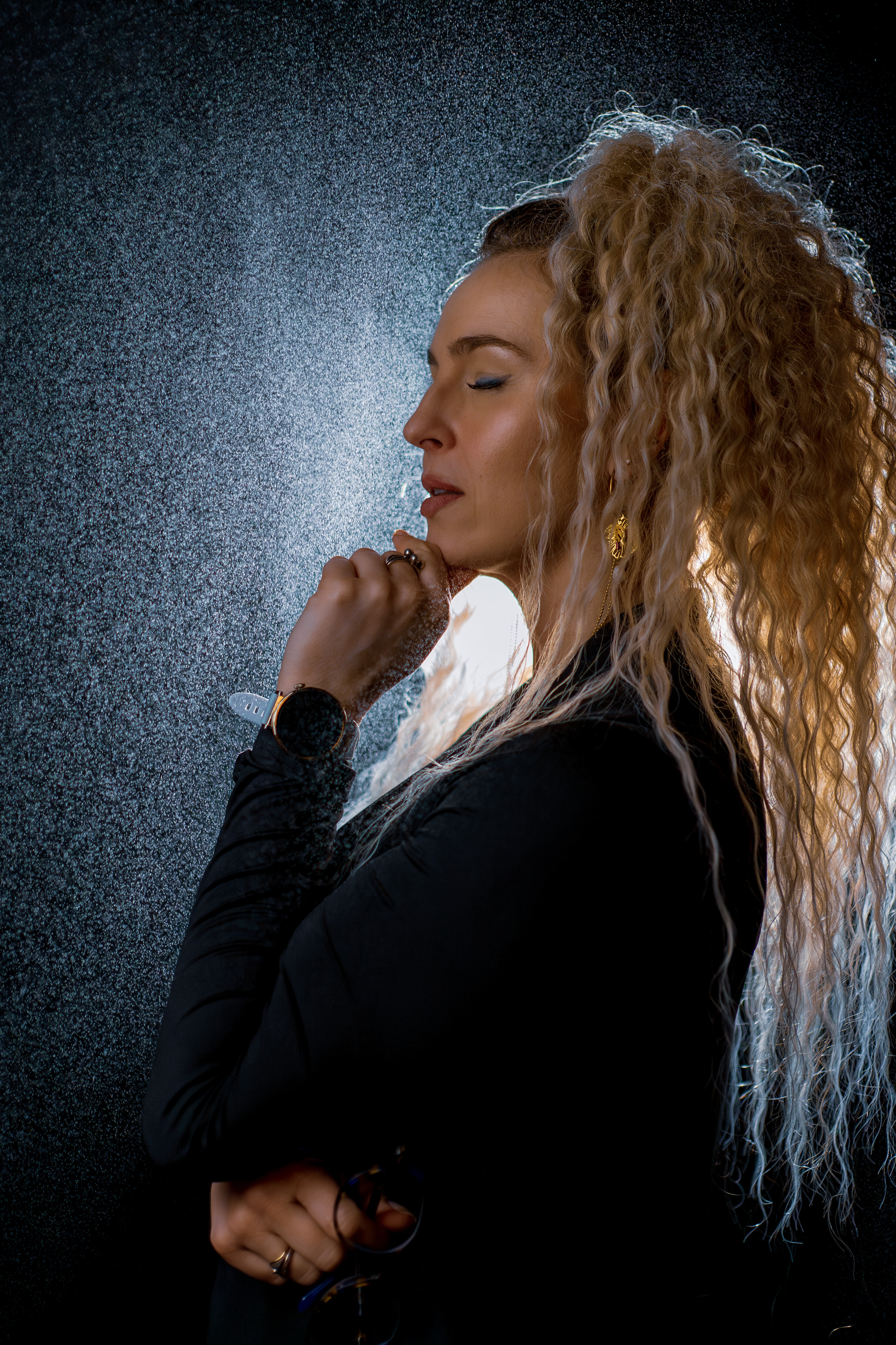 Posiadamy kolorowe tła, różne rodzaje oświetlenia, kolorowe ledy, dym, światło błyskowe, światło stałe, strumienice, wrota, softboxy, czasze modelujące, modyfikatory światła i inne ;-)